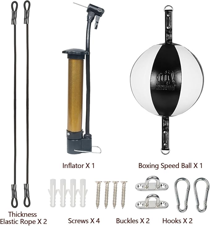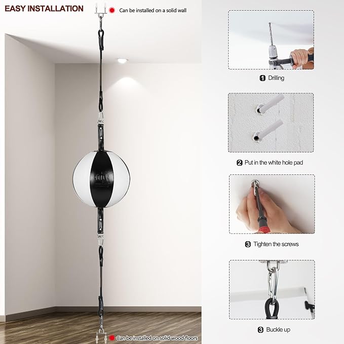 - Double end punching ball comes with durable bungee cords to fix it, After inflated, find a place to hang the punching ball and adjust the height to be suitable for your height so that you can use it