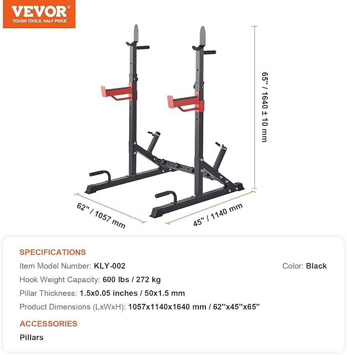 VEVOR Squat Stand - Multi-Functional Power Rack with Pull Up Bar, Hook, and Weight Plate Storage Attachment, Adjustable Power Rack Cage for Home Gym Equipment