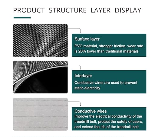 - 【MATERIAL QUALITY】- High quality PVC material, with a wear rate 20% lower than traditional materials. The texture is softer than other manufacturers' running belts, which can achieve better operation and reduce the failure rate of Treadmill due to excessive load.