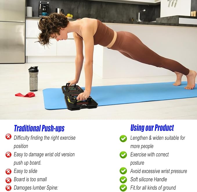 - Foldable Portable Push-Up Board: Lightweight design of the portable home gym. Who travel frequently or are always on the go can benefit from a portable push up handles for floor. It's lightweight and easy to pack, also suitable for use at home, office, or gym, you can use it to enjoy workout experience!