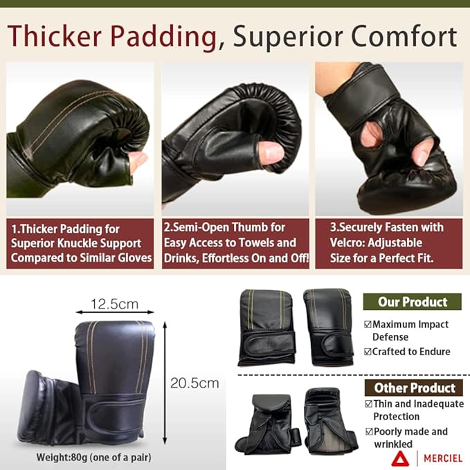 - 【PRECISE DESIGN】 - Designed to be the lightest option available, our punching gloves are tailored to enhance your striking accuracy and impact perception. Featuring openings in the thumb section, they offer practicality for tasks like opening drink lids or wiping away sweat. This design ensures an enhanced training experience, enabling you to focus on sharpening your precision.