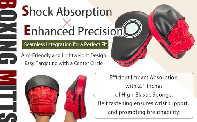 - 【COMES WITH MITTS】- Enhancing your punching technique requires cooperation from your training partner. Our punching mitts are lightweight and ergonomically curved for a comfortable, responsive hit. With a thickness of approximately 5cm, they provide an ideal balance of impact absorption and ease of use. The circular target at the center ensures precise aim, preventing punches from straying. Elevate your training sessions with mitts designed for effective and enjoyable workouts!