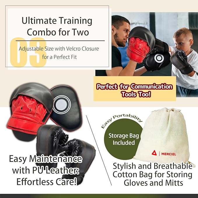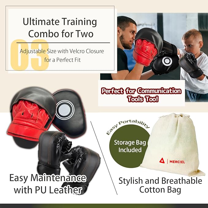 MERCIEL Pro Training Boxing Gloves and Boxing Punching Mitts for Adults – Comprehensive Boxing Set Adult Men and Women for Training, Muay Thai, MMA, Kickboxing, and Heavy Bag Work