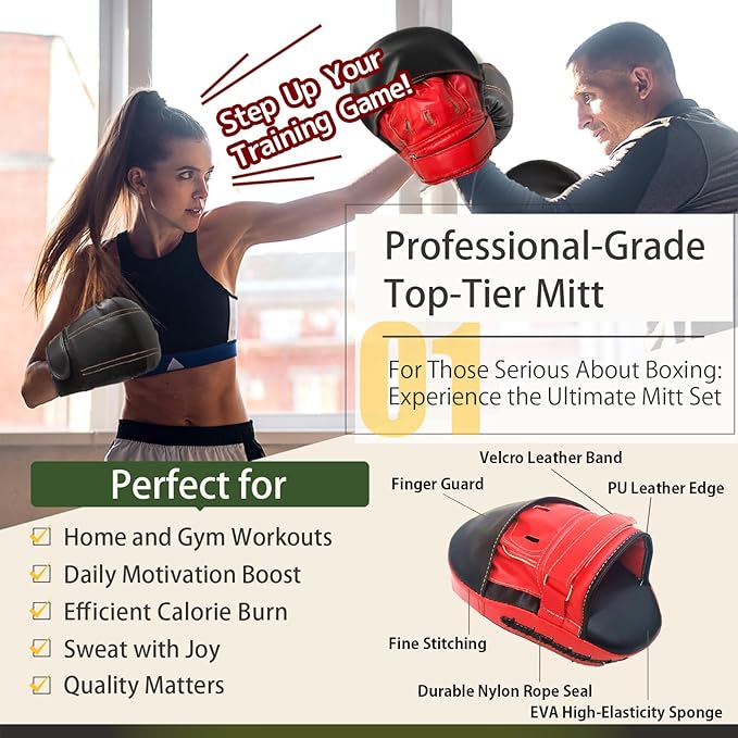 - 【SUPERVISED BY FORMER BOXER】- We have meticulously crafted a set of gloves and mitts, perfect for both home practice and gym rentals. Our professional-grade gear enhances your punch precision, whether you're training in boxing, Muay Thai, karate, kickboxing, taekwondo, or mixed martial arts. Upgrade your skills with our expertly selected equipment.