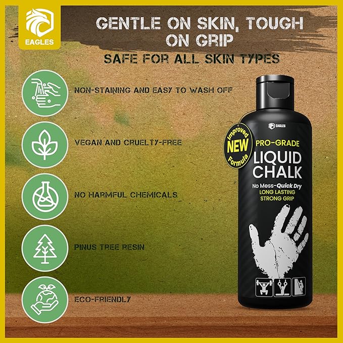 - 50ml Liquid Chalk: Eagles liquid chalk 50ml compact, travel-size bottle ensures your grip remains firm and your performance soars. Perfect for on-the-go athletes and fitness enthusiasts seeking reliable grip enhancement.