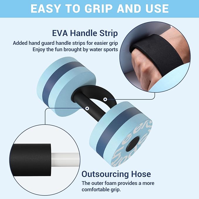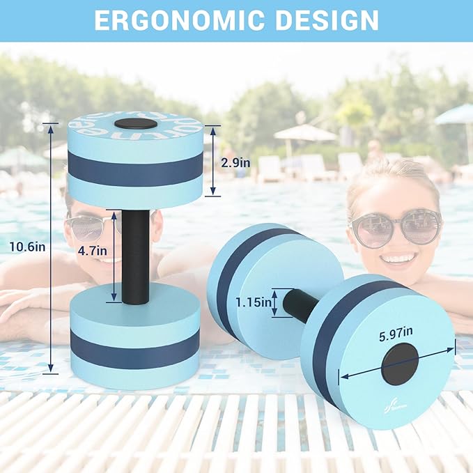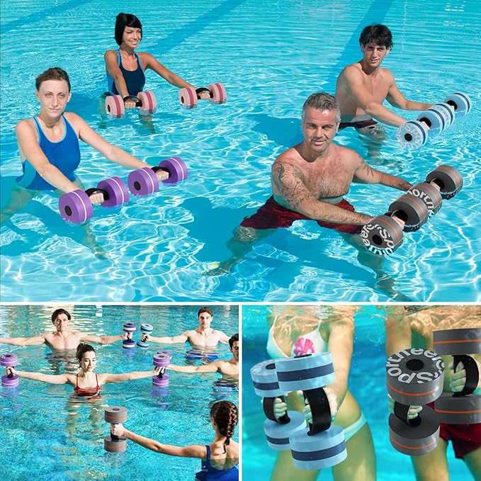 - 【Wide Application】: From swimming classes, water physical therapy, pool sports, underwater fitness to water aerobics, the Sportneer water aerobics weights accessories have limitless uses. Plus, the aqua dumbbells are perfect for water resistance exercises to build upper body strength and strengthen muscles.