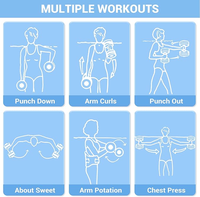- 【Ideal Water Gym Equipment】: Boost the efficacy and fun of your workout with the Sportneer pool weights for water exercise fitness. Perfect for teens, adults and seniors alike, the Sportneer swimming equipment set water dumbbells provide satisfying resistance during exercise in water to effectively strengthen muscles.