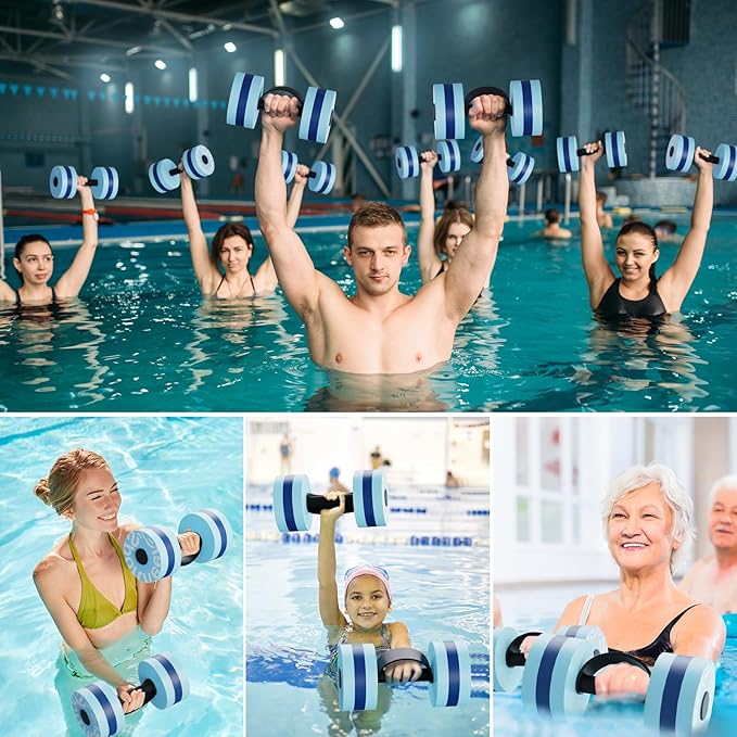 • 【Wide Application】: From swimming classes, water physical therapy, pool sports, underwater fitness to water aerobics, the Sportneer water aerobics weights accessories have limitless uses. Plus, the aqua dumbbells are perfect for water resistance exercises to build upper body strength and strengthen muscles.