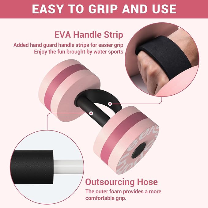 • Wide Application: From swimming classes, water physical therapy, pool sports, underwater fitness to water aerobics, the Sportneer water aerobics weights accessories have limitless uses. Plus, the aqua dumbbells are perfect for water resistance exercises to build upper body strength and strengthen muscles