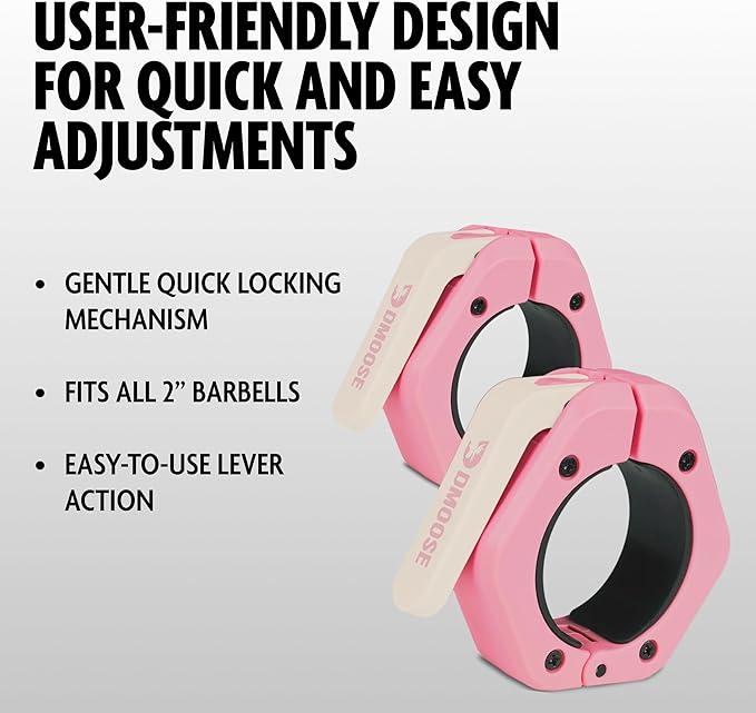 • 𝐔𝐒𝐄𝐑-π…π‘πˆπ„ππƒπ‹π˜ πƒπ„π’πˆπ†π π…πŽπ‘ ππ”πˆπ‚πŠ π€πƒπ‰π”π’π“πŒπ„ππ“π’: DMoose Quick Release Clamp features a user-friendly design that fits all 2" barbells. Quickly adjust and secure your weights with ease, saving time and keeping your workout momentum strong. Ideal for both home and commercial gyms. Enjoy seamless transitions between sets with these easy-to-use weight clamps, designed for quick and efficient adjustments.