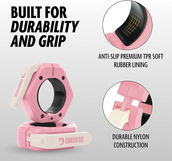 • 𝐃𝐔𝐑𝐀𝐁𝐋𝐄 π‚πŽππ’π“π‘π”π‚π“πˆπŽπ π–πˆπ“π‡ π€ππ“πˆ-π’π‹πˆπ π†π‘πˆπ: Built for durability and reliability, DMoose Barbell Collar is constructed with high-quality nylon polyamide and premium TPR soft rubber lining. The anti-slip grip of the Barbell Clamp ensures your weights stay in place, providing a safe and effective lifting experience. Trust in the robust build to withstand the toughest workouts and last for years, delivering consistent performance.