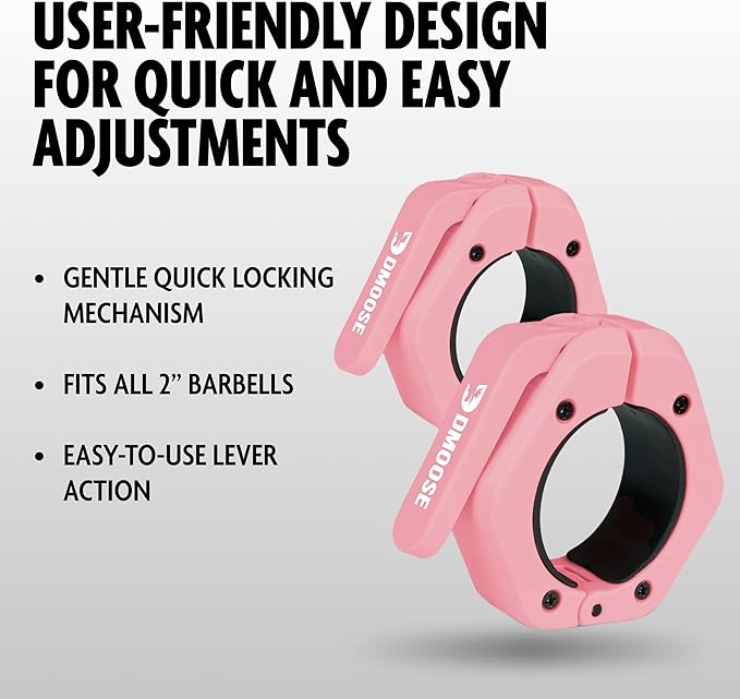 - ππππ-π πππππππ ππππππ π ππ πππππ πππππππππππ: DMoose Quick Release Clamp features a user-friendly design that fits all 2" barbells. Quickly adjust and secure your weights with ease, saving time and keeping your workout momentum strong. Ideal for both home and commercial gyms. Enjoy seamless transitions between sets with these easy-to-use weight clamps, designed for quick and efficient adjustments.