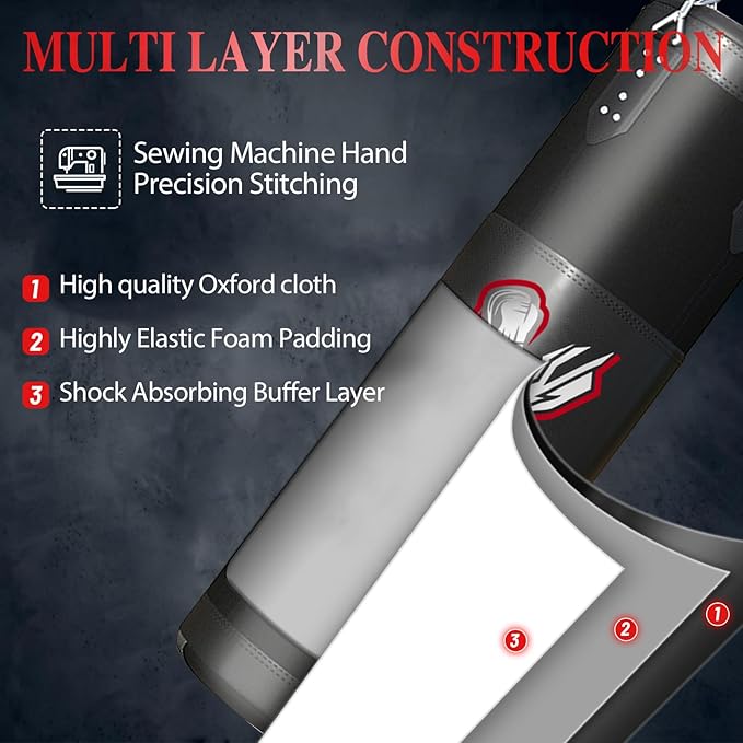 - 【Quality Materials】The punching bag is made of thick oxford cloth and PU, with multi-layer shock absorption foam structure, which can effectively reduce the impact generated in the boxing process and protect the wrist and joints.
