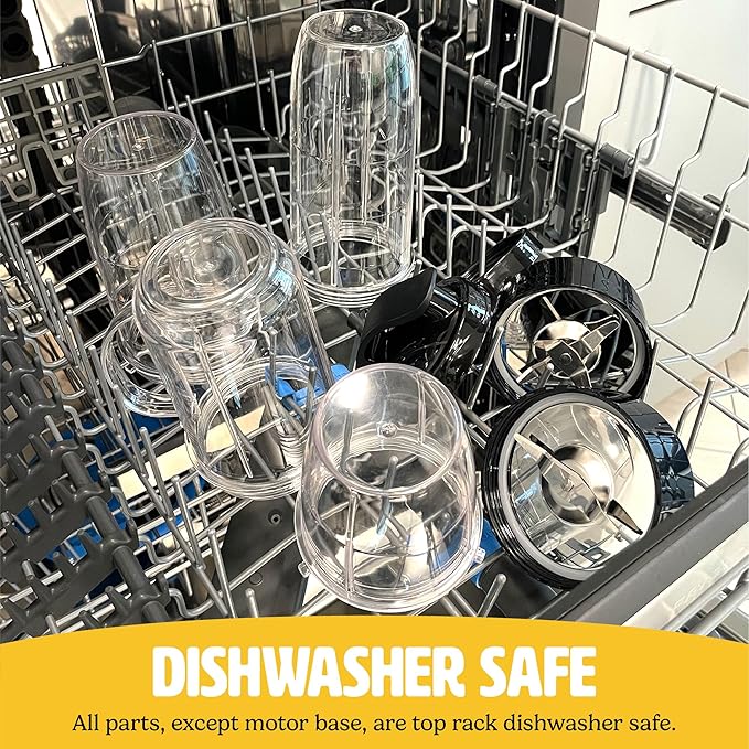 - EASY TO USE & CLEAN: Secure the cup on motor base, press the button, and blend! Dishwasher-safe cups and blades make cleanup a breeze, so you can spend more time enjoying your creations.