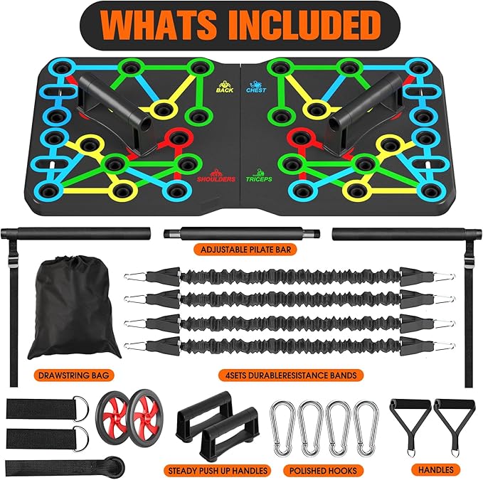 - Comes with fitness accessories: Push-up board sets usually come with additional fitness accessories, such as abdominal wheels, Pilates bars, etc., to expand exercise options and improve training results.