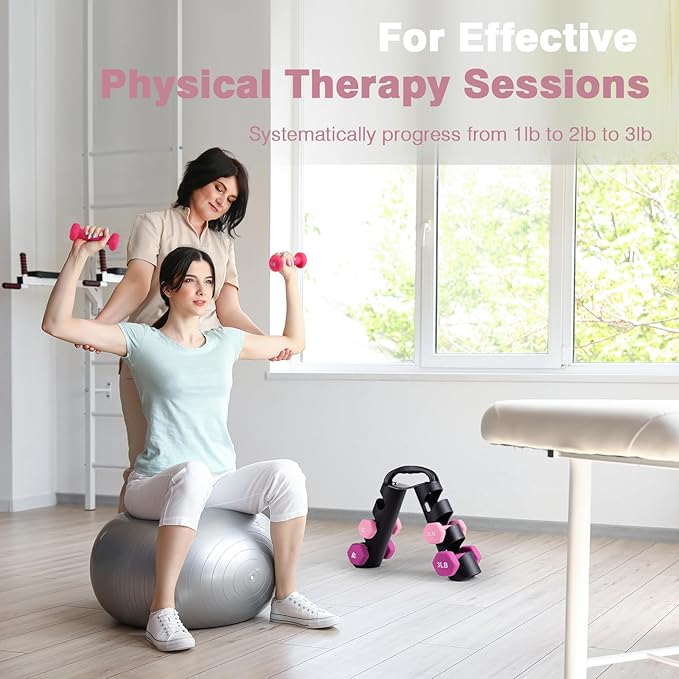 - Especially Perfect for Physical Therapy / Senior Fitness: Incorporating our 1lb, 2lb, and 3lb dumbbell set into your therapy routine provides an excellent opportunity for gradual rehabilitation. Designed specifically for therapeutic purposes, this versatile set allows you to embark on a progressive recovery journey. It is also suitable for daily workout for older adults to maintain physical well-being, enhance functional abilities, and improve overall quality of life while minimizing the risk of injury.