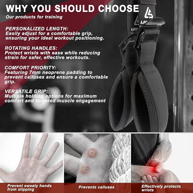 • Optimal Ergonomic Support- With four gripping options, our triceps straps prioritize comfort, reducing stress on your wrists, fingers, and elbows, thus preventing joint injuries during your workouts.