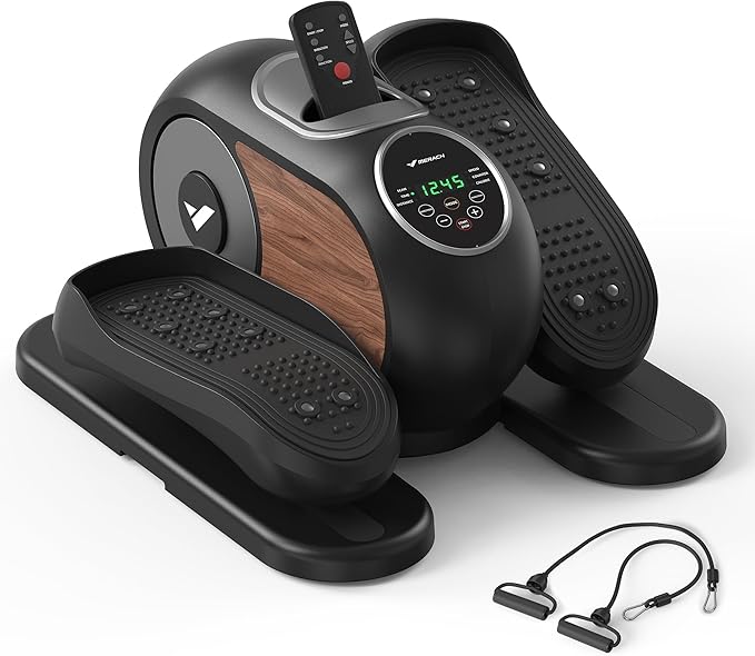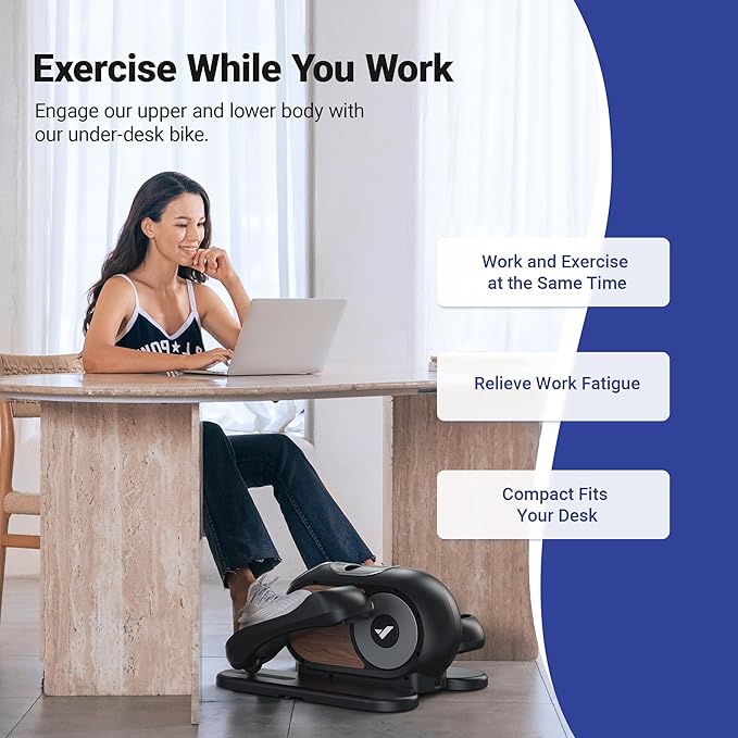 - 【Multiple Exercise】This under-desk elliptical offers upper body resistance bands in addition to single elliptical exercises, allowing you to exercise your arms, shoulders, and chest. Escape the monotony of elliptical exercise for a comfortable home workout.