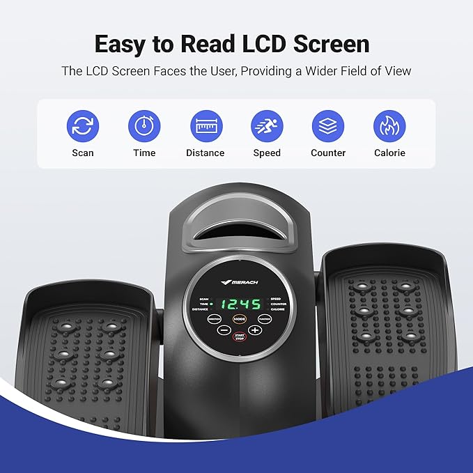 - 【AUTO and MANUAL MODES】MERACH under desk elliptical machine has Manual (12-level speed) & Auto (P1-P12) for your choice. Suitable for the whole family.
