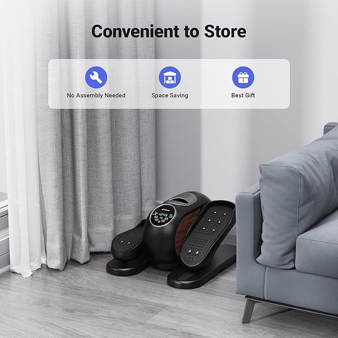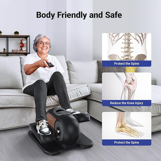 - 【Gift for Elders】Low-intensity exercise under the elliptical machine under the desk is suitable for seniors and people in recovery. Body friendly and safe.It can burn calories, promote blood circulation, and help your legs adapt and recover quickly.No assembly required, easy to store