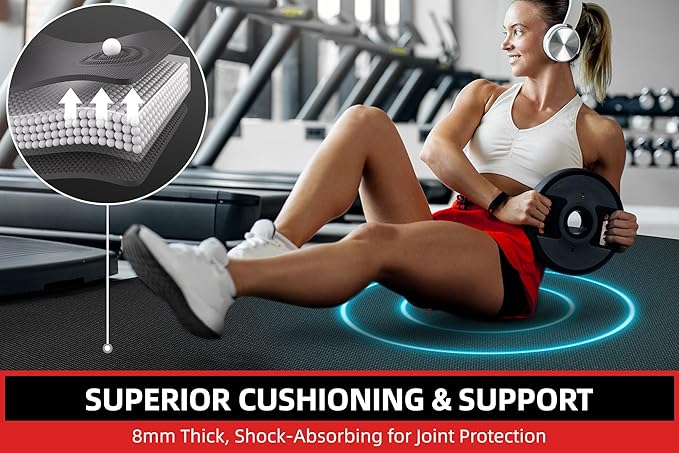 - 🎯 Triple-Layer Construction for Ultimate Grip and Durability: Wear-resistant top layer, high-density cushioning middle layer, and non-slip bottom layer provide a secure, stable surface, even during intense jumping or heavy equipment use. Stay grounded and focused on your workouts, knowing your workout mat won't slide.