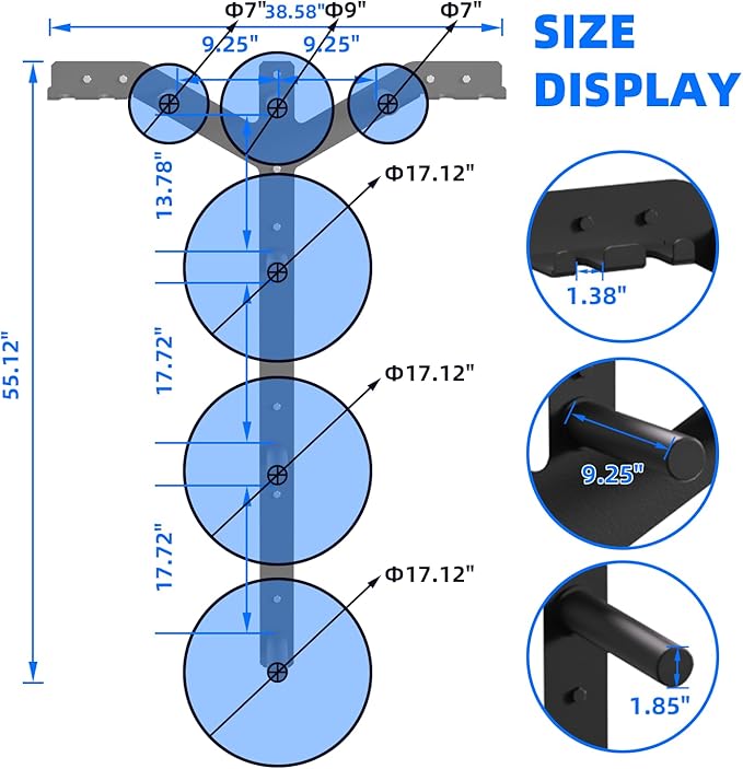 - Fit 2" Weight Platesy/Barbell: Our product can hold up to 4 Olympic barbells and 6 Olympic weight plates, with a wall-mounted design to save space in your gym. NOTE - Please refer to our size chart for weight plates before buying.