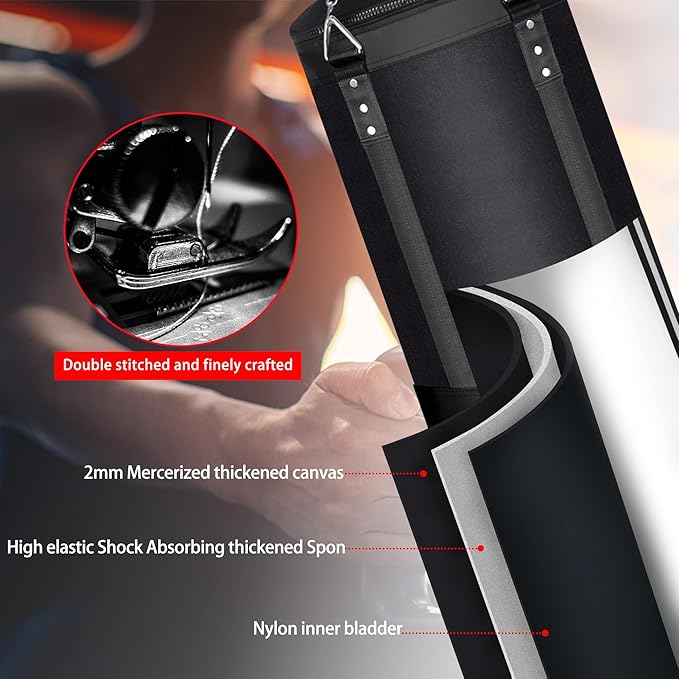 - Excellent Cushioning and Rebound: The heavy bag interlayer is made of thickened high-resilience shock-absorbing pearl cotton, high quality cushioning materials bring you a professional boxing experience
