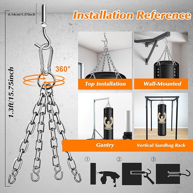 - Super Quality Microfiber PU Leather: The 4ft boxing punching bag is made of Super Quality Microfiber PU Leather, stronger wear resistance, color fastness and texture. The hanging bag made with multi layer shock absorption structure, which can effectively reduce the impact generated in the boxing process and protect the wrist and joints.