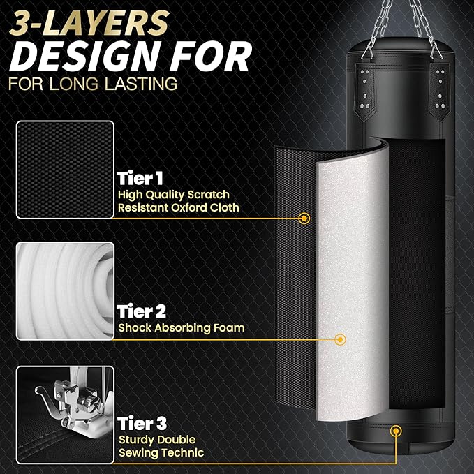 - 【Please note】Heavy punching bag comes unfilled, easy to carry and storage. You can fill it up with sawdust, sand, old cloth, shredded cotton fabric, sponge and more. But please don’t only install sand, the filling preferably no more than 50 pounds.