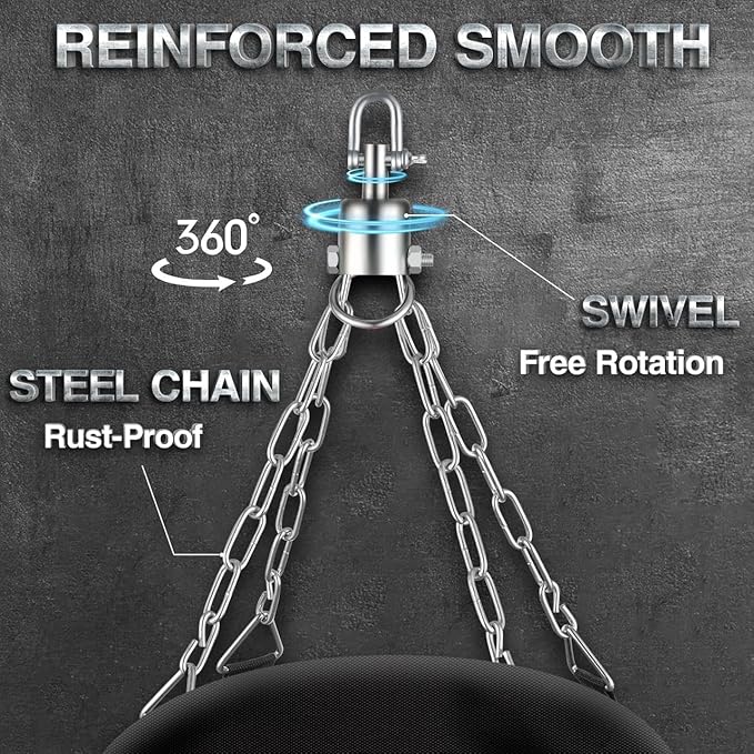 - 【360° Swivel and Sturdy Hanger】Unique 360° Swivel keeps the bag rebound freely after being hit. Equipped with reinforced bag hanger, 4 expansion bolts and a carabiner, it can hold up to 1100LB! Screw up the hanger and start your boxing training!