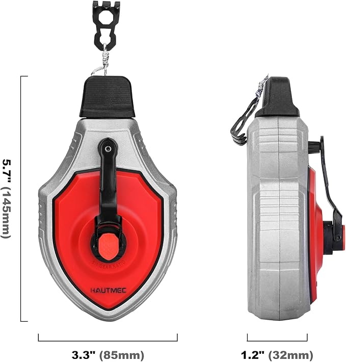 HAUTMEC Chalk Line, 30m/100ft Chalk Line Tool with Red Chalk, 6:1 Gear Ratio Reel, Chalk Box for Carpenters and Builders, HT0358