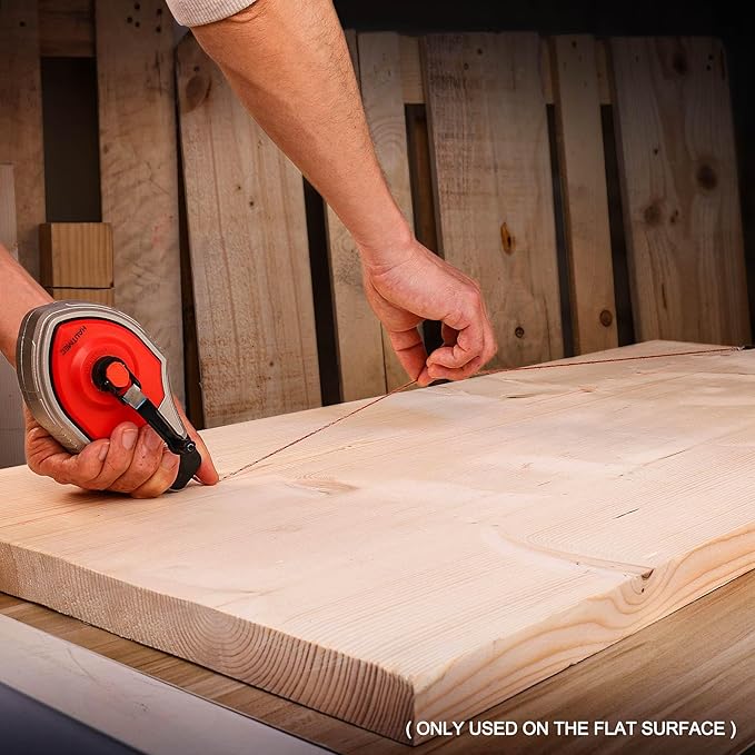 - 【Wear-Resistant and Clear】: This 100ft chalk line tool comes with a wear-resistant and reinforced cord that produces clear, eye-catching lines on construction sites.It also includes red chalk for enhanced visibility.