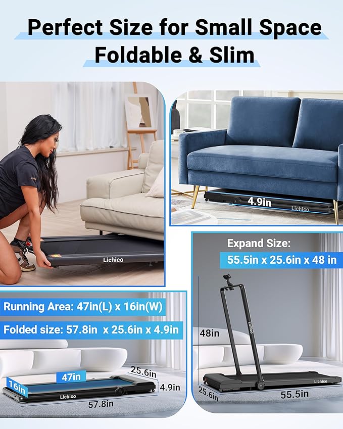 Lichico Walking Pad Under Desk Treadmill,Portable Small Treadmills for Home and Office,Super Quiet Brushless Motorized Walking Jogging Running Machine with Remote Control