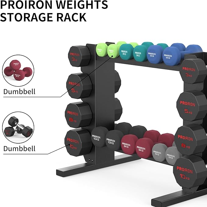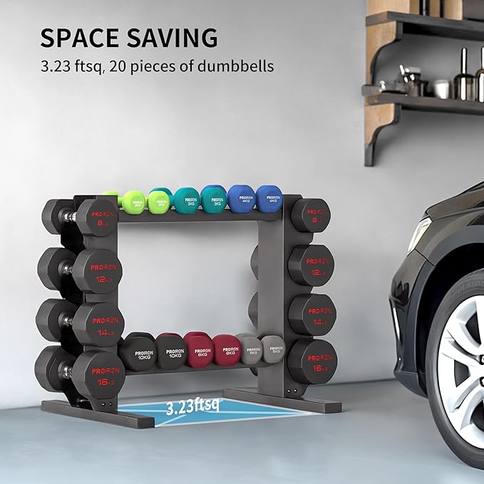- 【SPACE-SAVING DESIGN】: Keep your dumbbells in order. 20 dumbbells can be stored in 3.23 square feet of space for easy access while freeing up more space in your home gym.