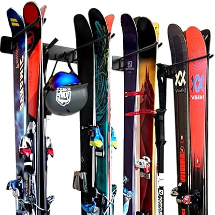 - SPACE-SAVING SKI STORAGE: Store up to 8 sets of skis, including adult, kids, and cross country skis, neatly and efficiently.
