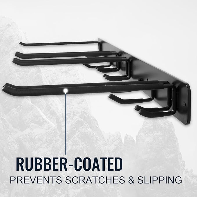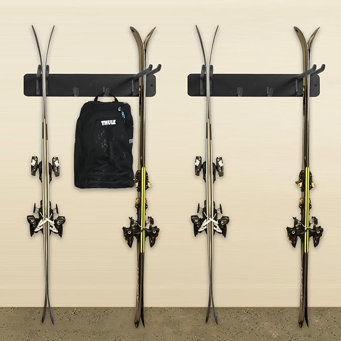 - RUBBER-COATED HOOKS: The rubber-coated hooks prevent scratches on your skis and ensure they stay securely in place don't slip off.