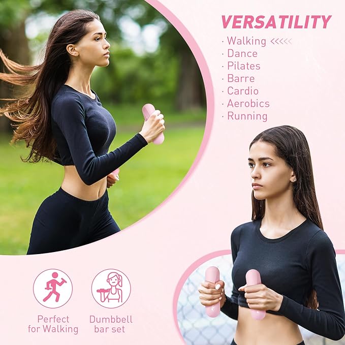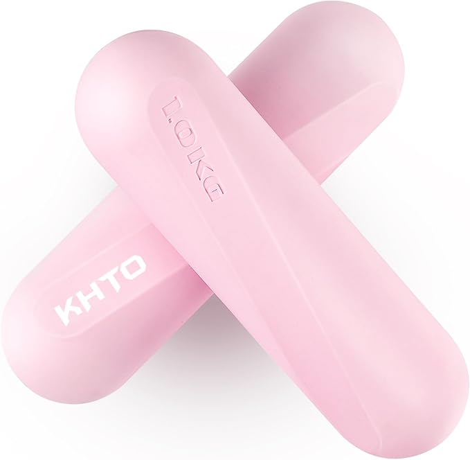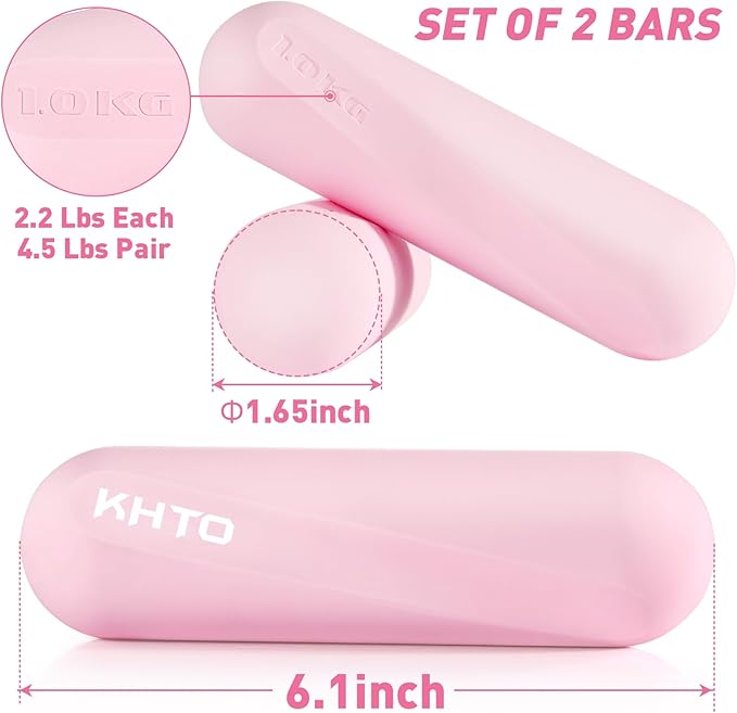 KHTO Food Grade Silicone Dumbbell Weight Bars for Women, Pink (2.2 LB | 4.4 LB Pair), Non-Slip Hex Sides Dumbbell Set for Home Gym Workout, Walking, Yoga, Dance, Barre, Pilates
