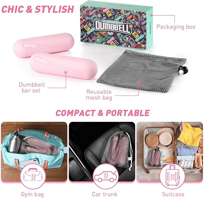 - ⛷️Supporting Every Fitness Journey – KHTO dumbbells can be used for upper body workouts like curls, presses, and extensions, stretching and recovery post-workout, squats and lunges, and other common exercises.