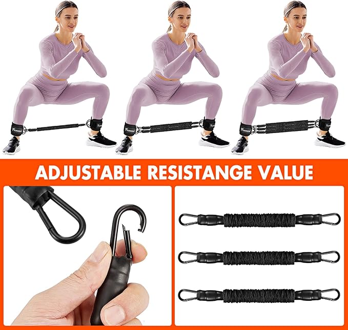 - ACHIEVE YOUR DREAM BODY:Achieve your dream body faster with our adjustable ankle resistance bands, which come with three different resistance levels (10/20/30 lbs). Tailor your workout to your fitness level and see noticeable improvements in just 15 minutes of training per day. Get a firmer, more sculpted glute area sooner than you expect—and get ready to flaunt your body at the pool!