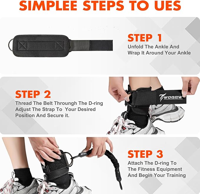 - PREMIUM COMFORT AND SUPPORT:Our ankle straps are padded with high-quality sponge material for a soft, breathable, and secure fit, even during long sessions. The neoprene ankle pads offer extra cushioning, while the adjustable D-ring design keeps the bands firmly in place, ensuring stability during leg and glute exercises. Enjoy a more comfortable and breathable workout experience, allowing you to focus fully on your goals.