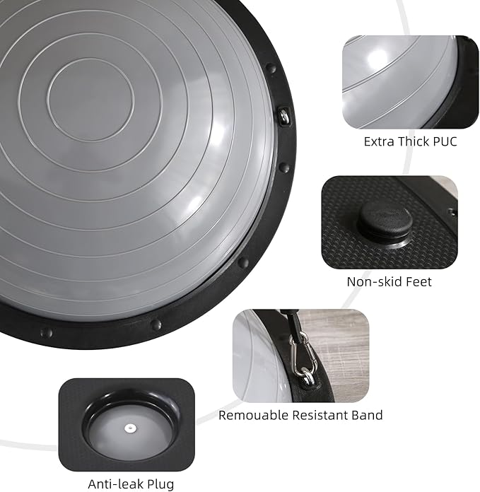 - Dynamic Exercise Options-Position the ball with its flat side down for stability workouts such as squats, lunges, and step-ups. For a more challenging regimen, flip the ball over to engage in push-ups, planks, or burpees. It also includes removable resistance bands that attach to the ball's sides, perfect for strengthening and toning upper body muscles.