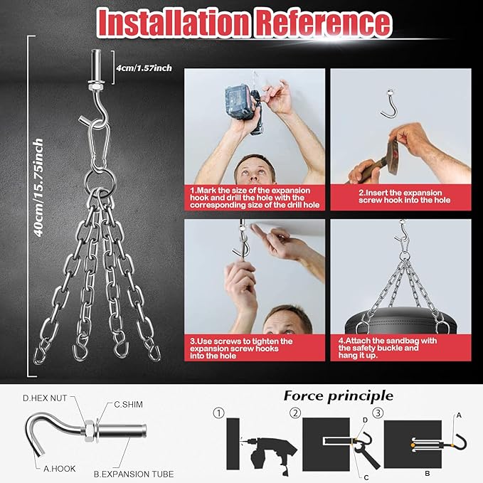 - Boxing Bag Holder Included: Boxing training equipment comes with a durable boxing bag holder that can be mounted on the ceiling and different wall brackets, durable and can support the weight of kids heavy bags