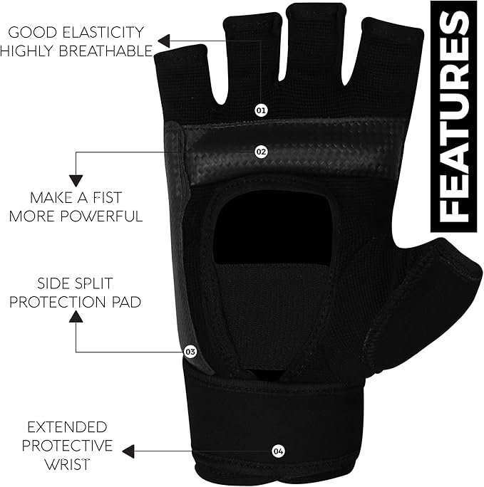 - 🥊BOXING GLOVES To support martial artists, protect the entire back of the hand with your fingers to absorb shock. Effectively protect your wrist from injury with a tube inserted into the palm of your hand, which provides the most comfortable and natural grip. A hollow palm with support bar and an elastic, breathable design ensure better grip during training.