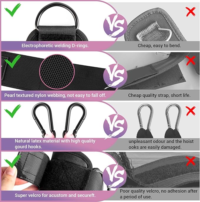 - [ANKLE RESISTANCE BANDS DESIGNED ONLY FOR WOMEN] Our ankle strap padding is made from a high quality neoprene material that wraps around your ankle in unparalleled softness and comfort. The matching three resistance bands are made of 100% pure natural latex, which is safer than regular synthetic latex. Best of all, the cool purple training poster we provide is easy to follow even for beginners!