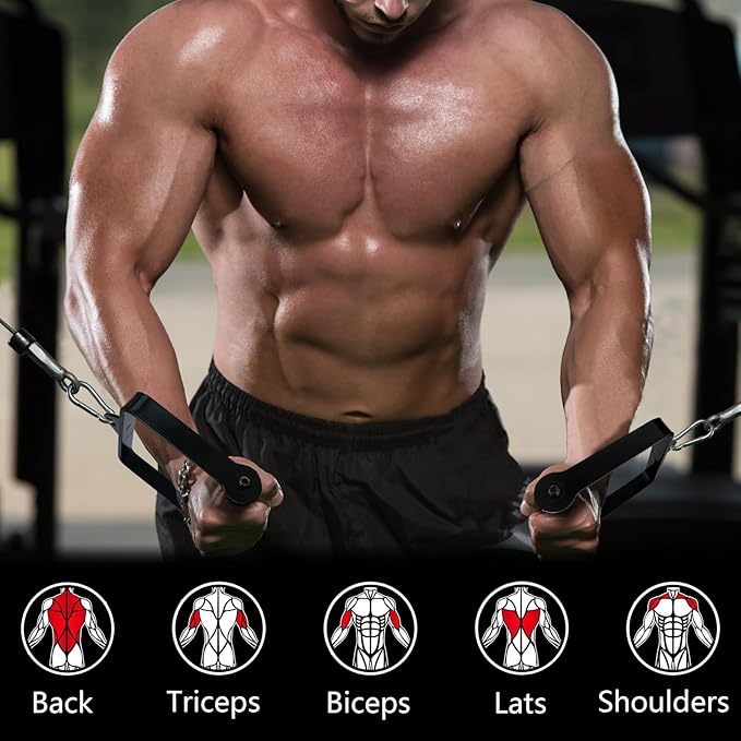 - Better Grip, Better Comfort - The rubber grip on the double d row handle and v sheaped pull down bar and straight rotaing bar and single D-handle gives you a very firm and comfortable grip. It won't slip with sweat like many others, This lets you focus on your form rather than worrying about losing grip on grip as you dominate each set on that tricep machine. Best multi workout cable machine attachment