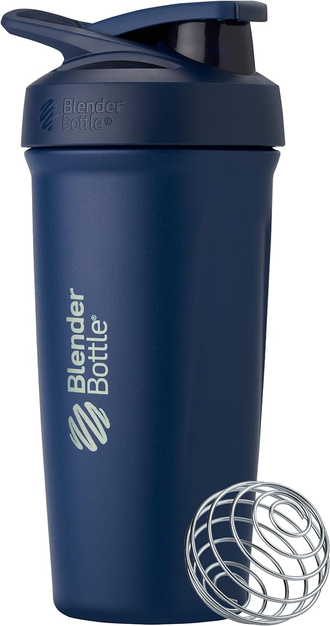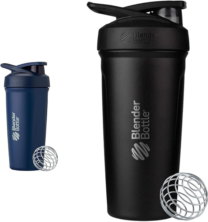 BlenderBottle 24-Ounce Stainless Steel Shaker Cup Bundle with Wire Whisk, Navy and Black