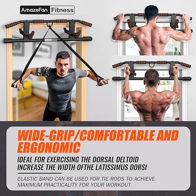 AmazeFan Pull Up Bar Doorway with Ergonomic Grip - Fitness Chin-Up Frame for Home Gym Exercise - Multi-Angle Grip - 2024 Upgrade Smart Hook (Fits Almost All Doors)