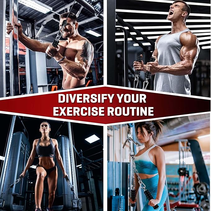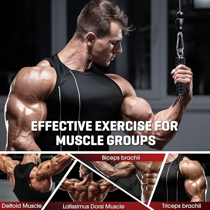 - Humanized Design: The cable machine handle design conforms to hand grip habits, threaded and anti-slip particles provide friction and a comfortable grip, preventing sweaty hands from slipping and increasing stability