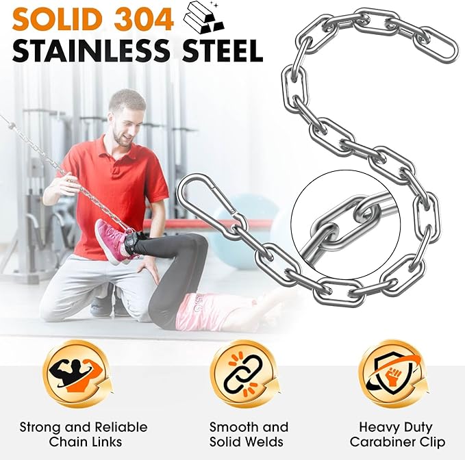 • Resistant Material: The gym cable machine chain extension is made of quality 304 stainless steel, with good abrasion and corrosion resistance, safe and solid, not easy to deformation and breakage