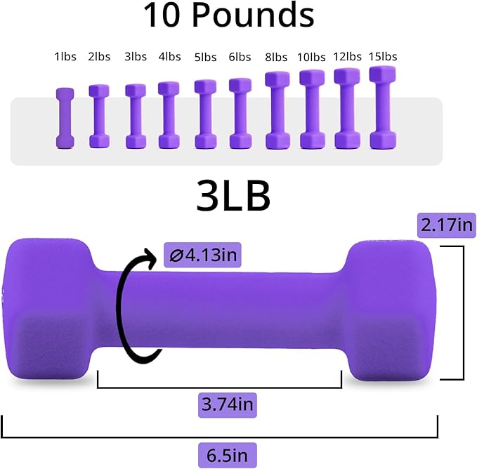 Portzon Weights Dumbbells 10 Colors Options Compatible with Set of 2 Neoprene Dumbbells Set,1-15 LB, Anti-Slip, Anti-roll, Hex Shape for Shoulder,Neck, and Hand Training for Seniors